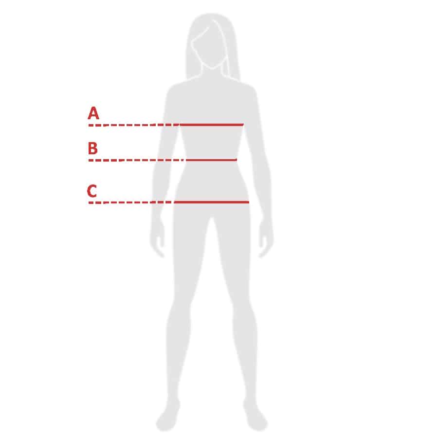 Mesurez votre tour de poitrine en vous référant à la partie la plus large de votre poitrine et faites le tour avec le ruban (sous les aisselles, par-dessus les omoplates) en gardant le mètre à l'horizontal.
